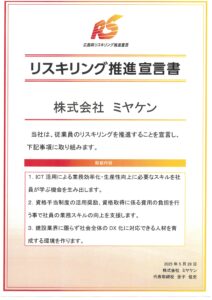 ミヤケンでは、従業員が新たなスキルや知識を習得するための支援策として「リスキリング推進宣言書」を策定いたしました。 お知らせ この記事が気に入ったら フォローしてね! Follow Me URLをコピーしました! URLをコピーしました!